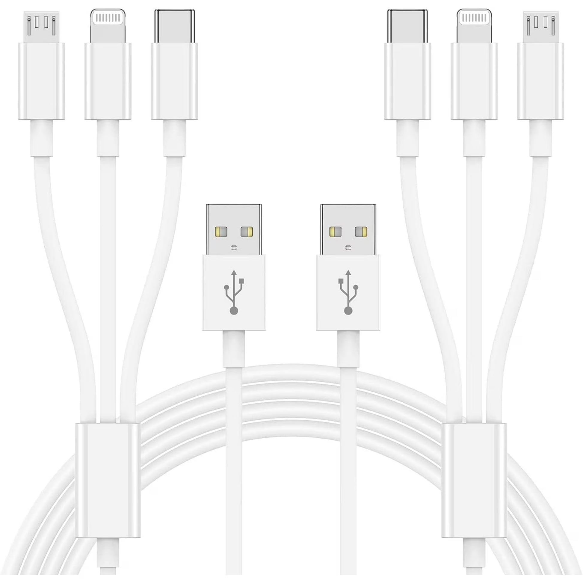 Universal 3-in-1 cable with USB-C, Lightning, and Micro connectors. One cable for all devices.